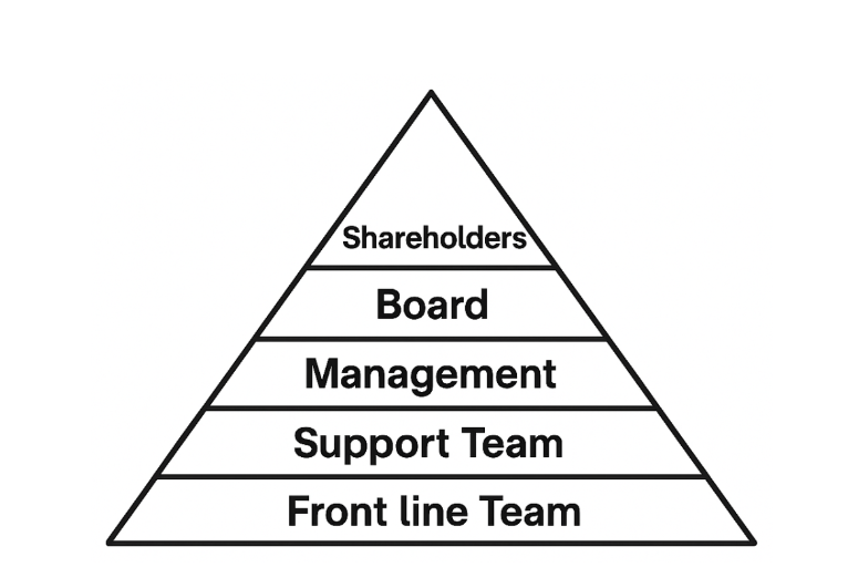 This upside down structure leads to playing a long-term game with long-term people. (A talent magnet.)